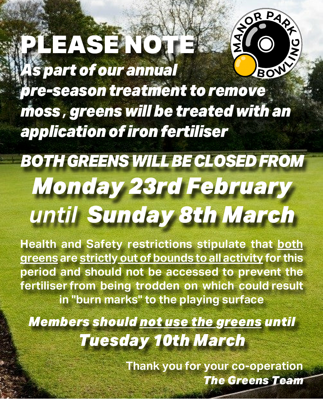 If your going stir crazy and missing bowling, don’t worry as the the Manor Park bottom green will be staying open throughout the autumn and winter months.