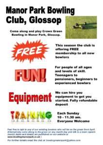 Our bowling green will be open from late March. If you want to try bowling, please contact us. It’s free to new members and we can provide you with equipment and training. (bowlingmanorpark@yahoo.com)