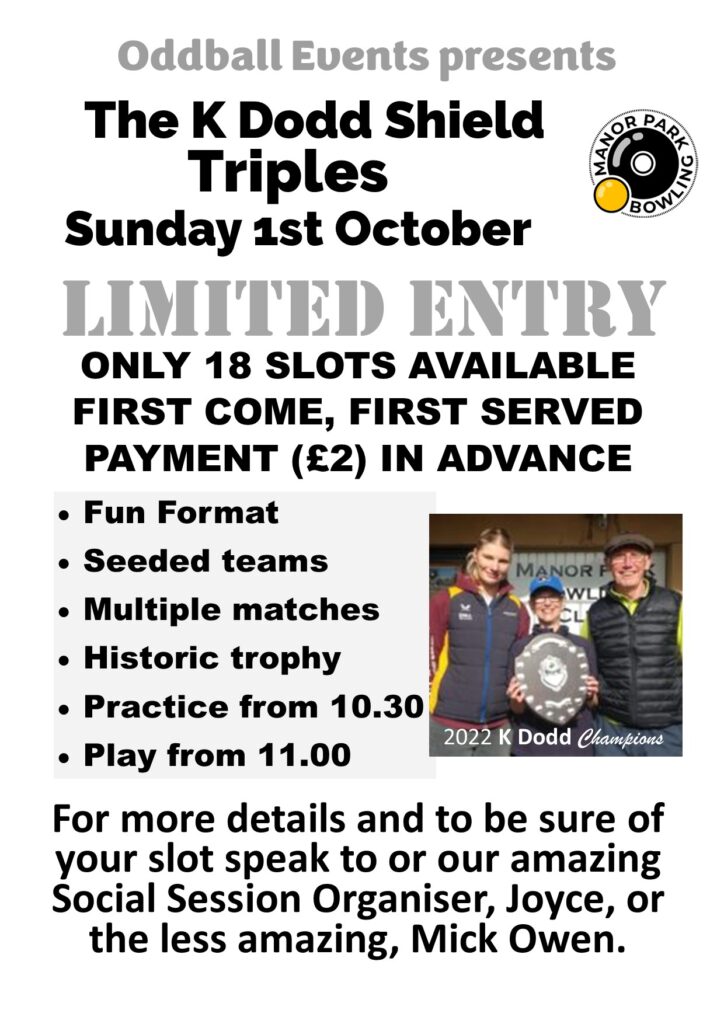 The Presentation Night is on Friday 8th December 2023 from 7pm at Glossop Golf Club. The time has come for members to reserve their places. Places are limited so can you please let us know asap. Please email us back on bowlingmanorpark@yahoo.com with your name and  number of tickets required. Put your name down on the notice in the club room to confirm attendance.