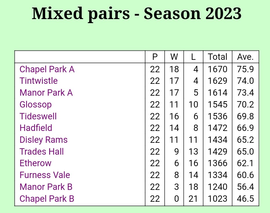 The Presentation Night on Friday 8th December 2023 might seem a long way away. We are having the event at Glossop Golf Club. The time has come for members to reserve their places. Places are limited so can you please let us know if you want to attend. Please email us back on bowlingmanorpark@yahoo.com asap with your name and  number of tickets required. Alternatively, you can put your name down on the notice in the club room to confirm attendance.