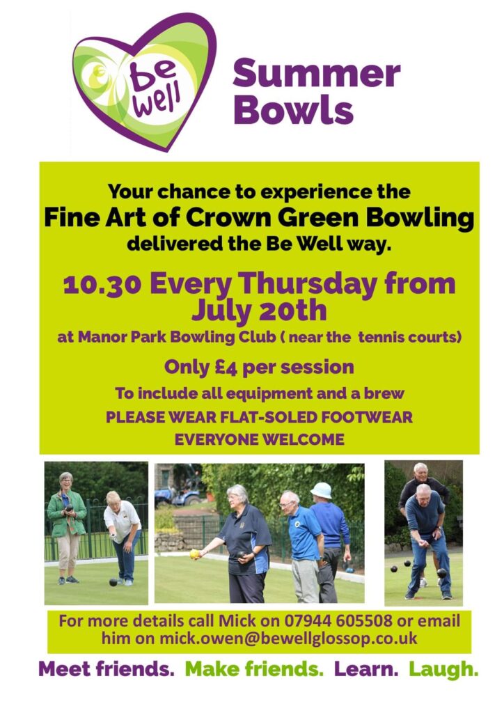 Manor Park’s resident Crown Green Bowling Club are gearing up to play an active part in this year’s Glossop Carnival by offering Come & Try It sessions for individuals, couples and families as part of what is set to be a fun-filled Sunday in the park.