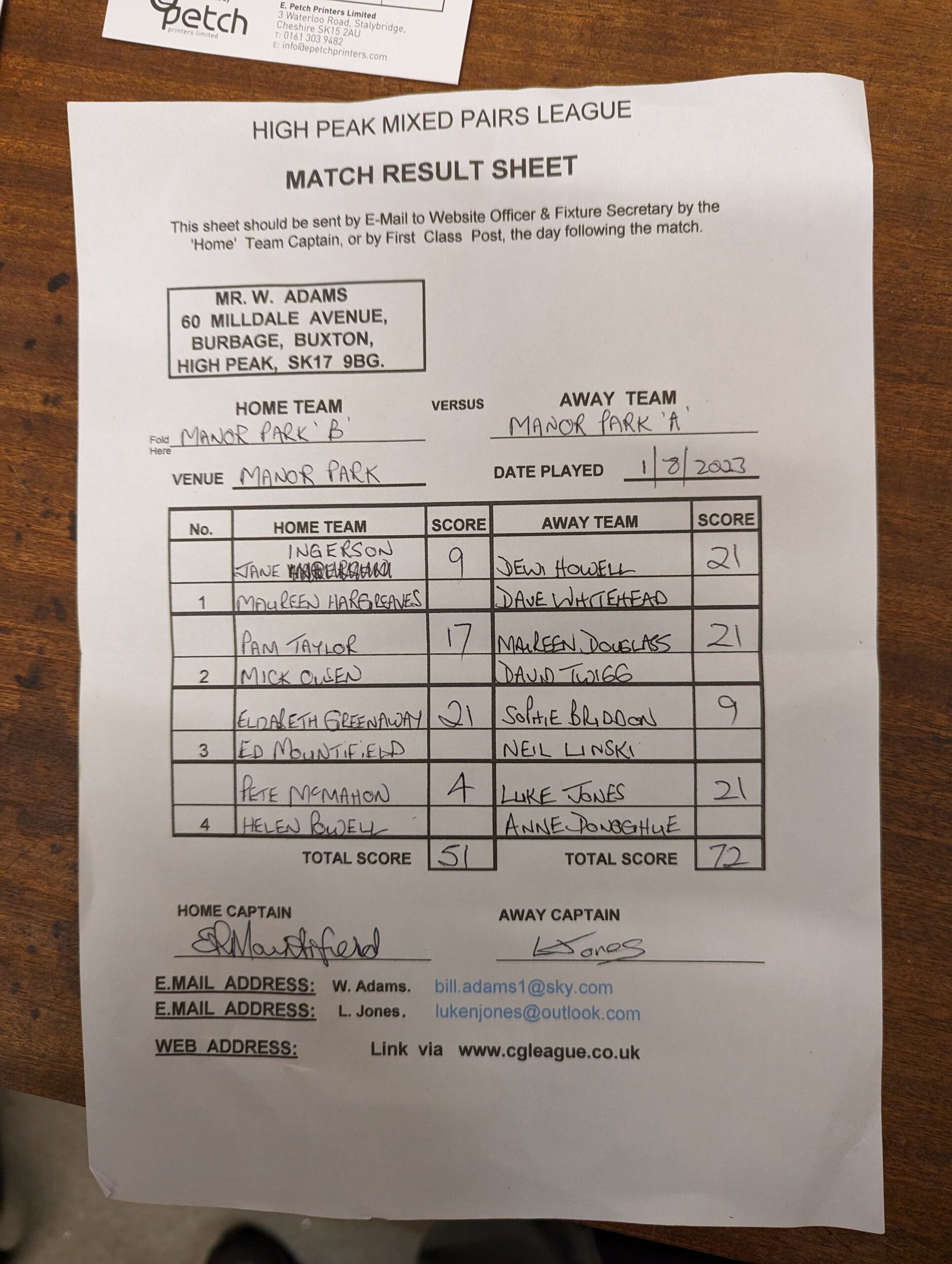 Well done to both Ed Mountfield and Elizabeth Greenaway from the B team who won their match 21 – 9.
