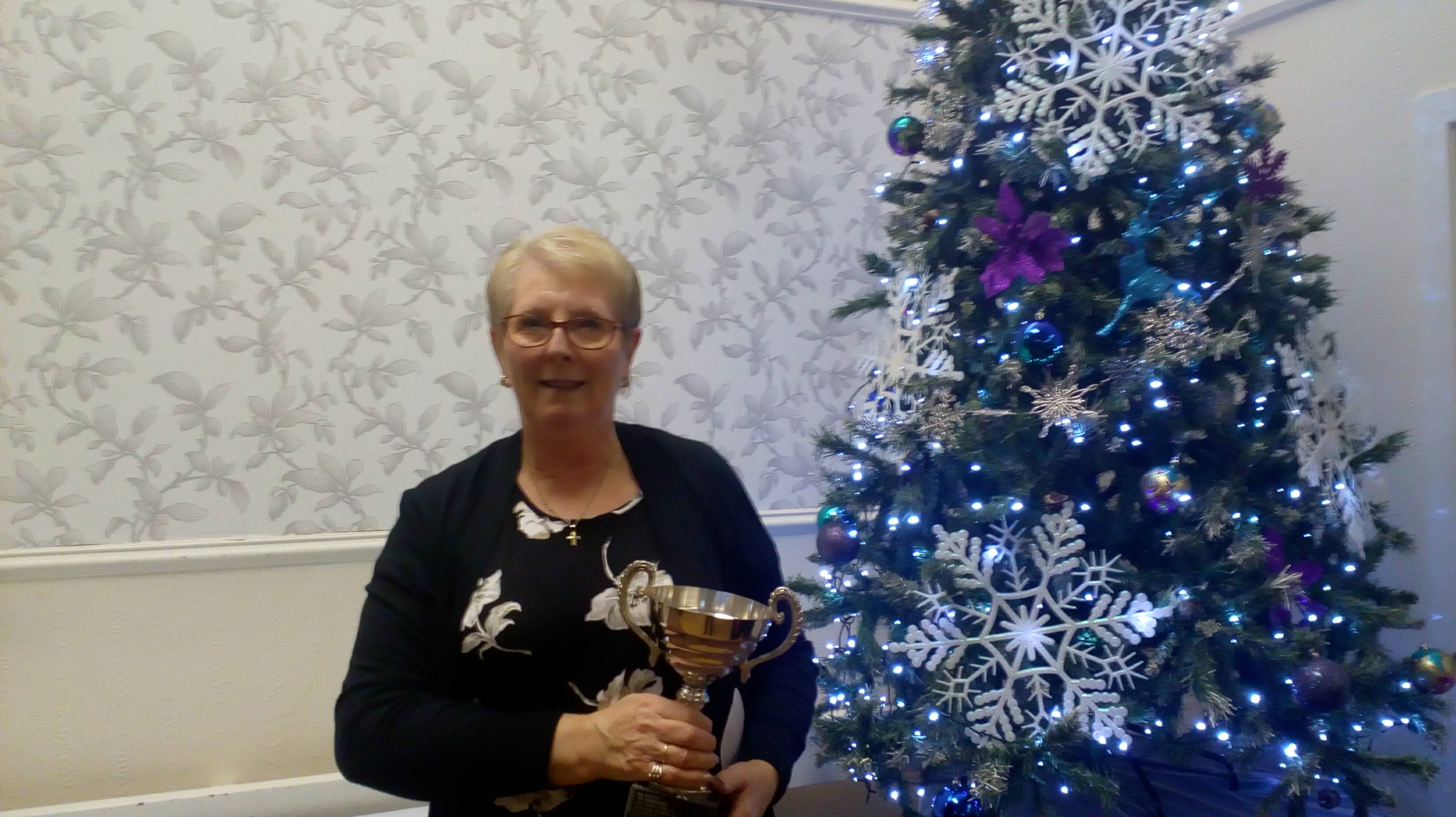Tameside Ladies Collect their Trophy Posted on 25/11/2017 by admin Eunice Coombes, Tameside Ladies team captain, pictured at the League’s presentation evening on 24th November, collecting the runners up trophy on behalf of the team.